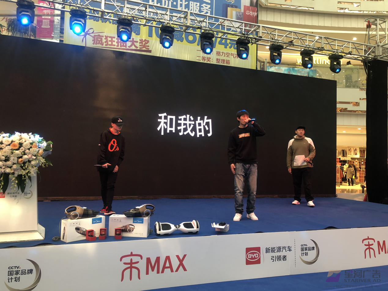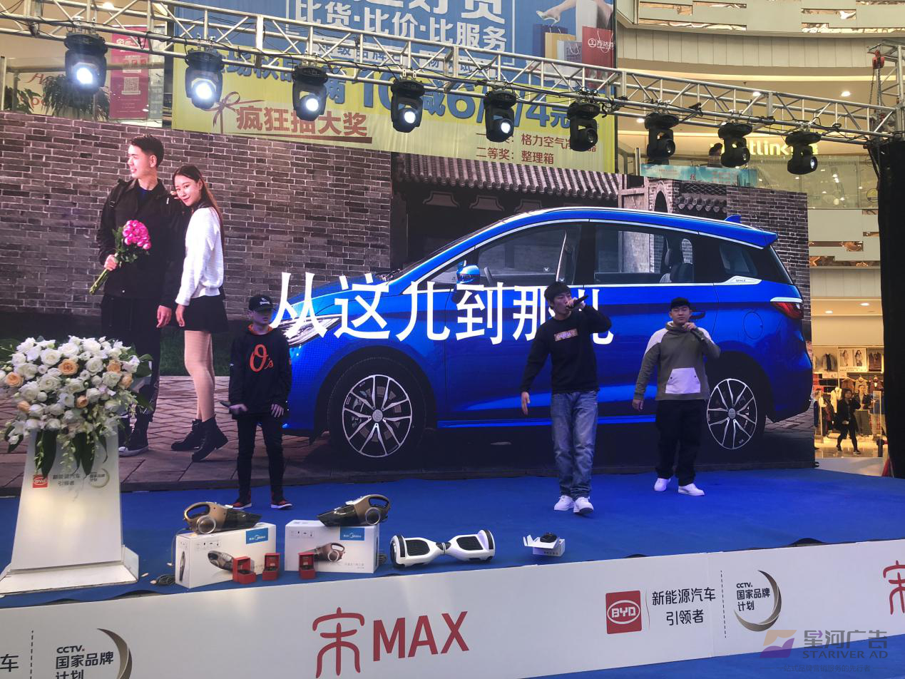 2017年9月25日,比亚迪旗下MPV车型宋MAX在北京水立方正式上市。为延续总部上市热度,强化终端集客,扩大区域产品声量,11月4日,由星河广告全程参与活动策划并执行的比亚迪宋MAX石家庄上市发布会选择在石家庄万达进行上市曝光,内场举行产品上市发布会,外场做产品试驾体验。