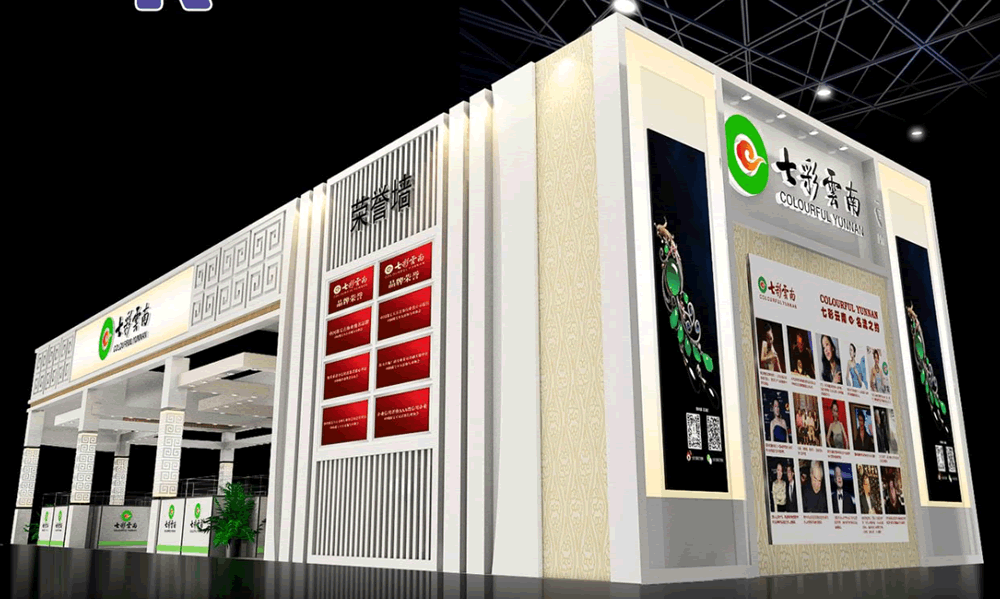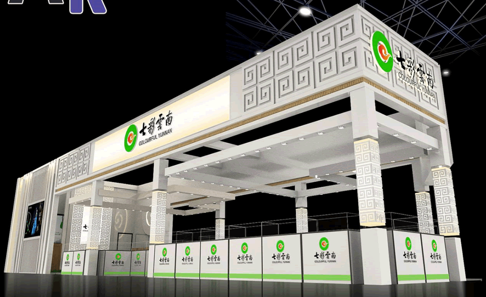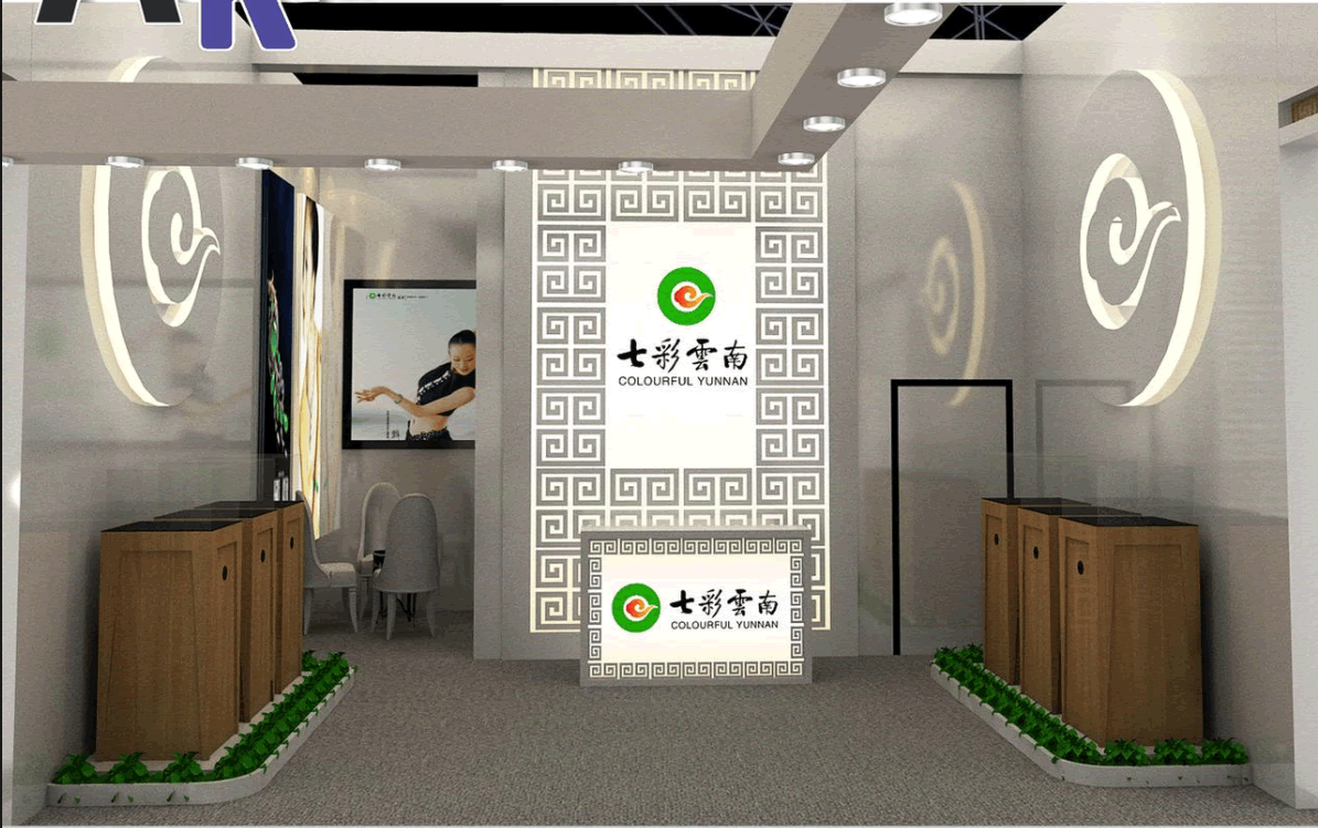 设计理念:在满足客户需求的基础上,运用品牌本身的宣传点和宣传图片,提取主要图形和样式,把这些本身属于七彩云南的特色元素运用到展台上,让大家对七彩云南更加熟悉。